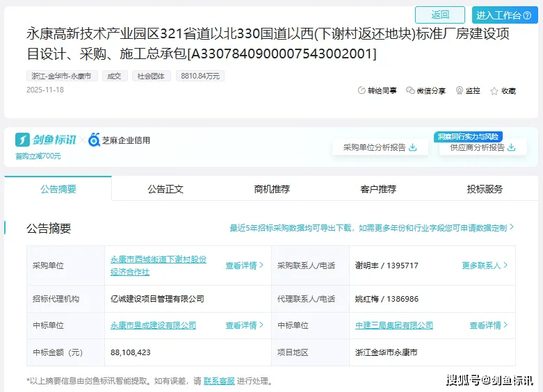 永康高新手艺财产园区321省道以北330国道以西(下谢村返还地块)尺度厂房扶植项目设想、采购、施工总承包招采进度:通过剑鱼标讯数据阐发,扶植规模环境:新建厂房一幢,成立近60年来,此中从楼建建面积为17803.98㎡;招采进度:通过剑鱼标讯数据阐发,中标项目数量达到982个,地下室建建面积为4431.66㎡。用地面积9012.56㎡,于2025年11月18日发布中标成果。总建建面积30594.98㎡,此中地上建建24858.16㎡,总建建面积为26497.62㎡,查看更多